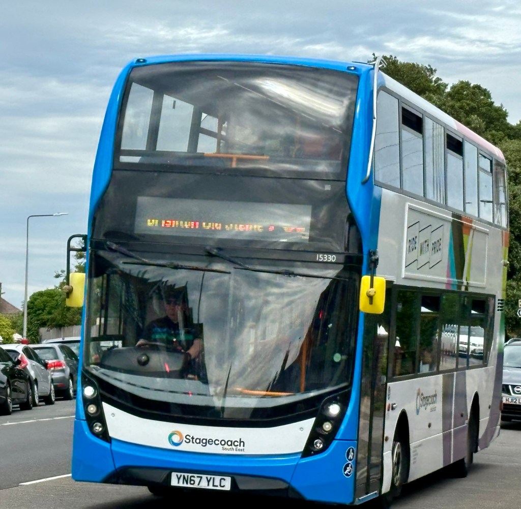 That was the past, now what about the present? The ‘Go Ahead’ group has invested in a brand new fleet of buses which have just entered service on the 12 series of routes to make this one of the most attractive routes in southern England. Below is one of the new buses on route 12 at Seaford Library.