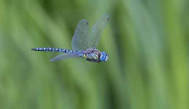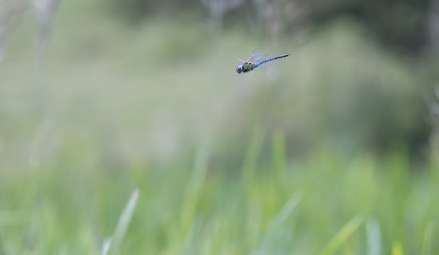 So, we now come to this past week, when I have had 3 sessions with the dragonflies at the local breeding area. Up to 10 males have been seen as well as possibly 3 females. Twice in tandem with males. It certainly is a challenge photographing them in flight as they are constantly moving about at high speed, only occasionally hovering in one spot for a second or two. Unless you are in exactly the right spot you have no chance. But, one did hover in the right area on each occasion, giving me the fighting chance I needed. There is still plenty of room for improvement, so fingers crossed for next time.