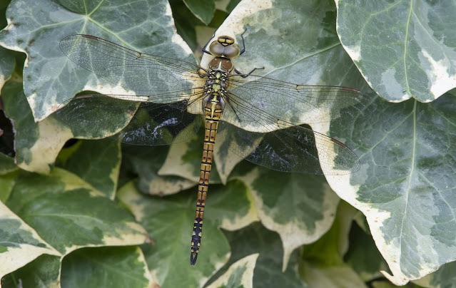 It was 3 years later that my next sighting of the species happened, and that was amazingly in my garden!! I was in the back garden, when I spotted quite a small dragonfly fly across the garden and land on the mass of Ivy that covers the fence. I knew it was different, and I had no idea at that moment what species it was. I ran upstairs to grab the camera and got back in the garden, but I stupidly hadn’t made a mental note where the dragonfly was actually sitting. I panned the area and eventually spotted it. After taking a few images, I was then able to check the dragonfly books. I was amazed that it was a teneral (immature) Southern Migrant Hawker. Possibly the first sighting for Seaford? And it had chosen my garden!!