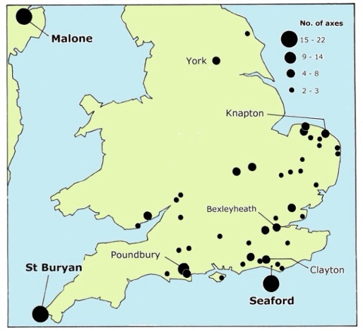 Small axe hoards consisting of two to eight axes were fairly common in southern England, but larger hoards were unusual.